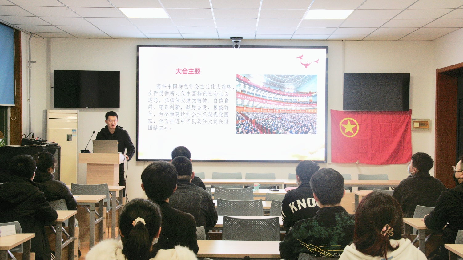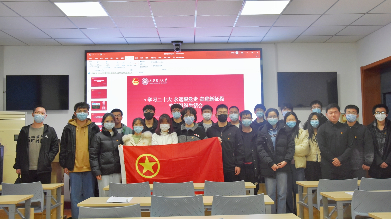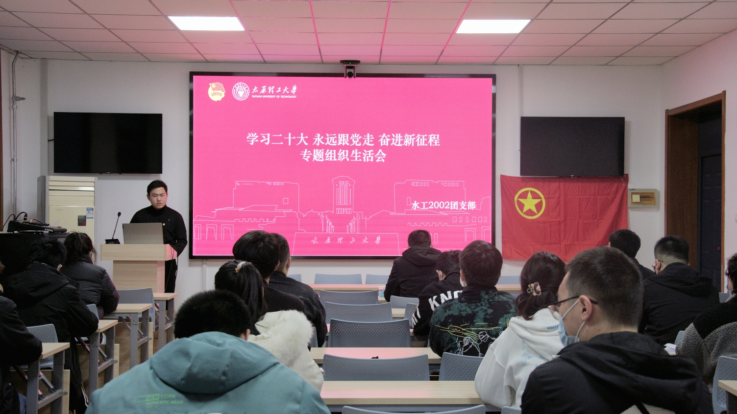 “我们是五月的花海,用青春拥抱时代……”在共青团员们嘹亮而充满朝气的歌声中,水工2002团支部专题组织生活会正式开始。首先,团支部书记康宇汇报了团支部今年开展“学习党的二十大,永远跟党走,奋进新征程”主题教育实践活动情况,并做《党的二十大报告中看中国式现代化》主题学习分享。接着,团支部成员依次上台发言,总结自己近段时间思想、生活、学习等方面的不足,提出改进方法。
