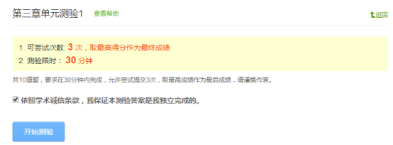 第三章则是本课程的基础,内容多,概念多,基础性比较强,目前进行了一般的教学内容,我以纯客观题的形式发布了单元测验,有些题目知识基本概念,有些则具有一定的难度,需要深入思考。为了督促大家的深入学习,我设计了20道题,每次随机抽取10道,允许大家答题三次,以便员工不断巩固学习内容。