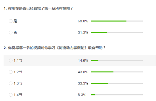 一是分析课程特点,加强资源建设。在学习熟悉中国大学MOOC 平台使用的同时,认真分析了同济大学《河流动力学》课程的特点,并与本校《河流动力学概论》课程进行了对比,发现两门课程尽管主要核心内容一致,但无论是授课对象,还是授课目标、内容编排、教材等都有着明显的区别,因此,要想使用该课程MOOC作为SPOC课程资源,绝不照搬,需要进行再次加工。因此,我做了大量工作,认真学习了所有的MOOC视频资源,不仅进行了适度的删减改动,还将本校课程的相关内容以及PDF课件补充进了MOOC中,从课程介绍页到课程内容编排、作业都体现出了本课程的特色,使其课程资源可以与公司课程实现对接,为疫情得到控制员工返校后的课堂教学的衔接打好了基础,也从毕业要求出发保证了课程教学质量。
