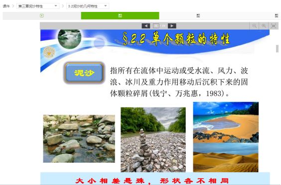 课程教学中以泥沙的基本特性为基础,以泥沙运动作为主线,以泥沙的起动、起悬以及推移质和悬移质的运动规律的分析理解为重点,进而理解泥沙、水流以及河床可东边界的复杂响应关系。能够分析自然条件下以及受人工控制之后,泥沙运动对河道、水库、取水建筑物、渠系等以及农业发展的影响,并对农业水利工程领域内的复杂工程相关的泥沙问题进行深入分析,能够理解评价其对生态环境、社会可持续发展的影响。 |